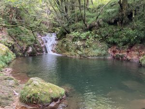 沢を歩いて吊り橋をわたって滝を横目にすすめすすめ。