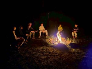 二日目の夜。明日は帰る日。みんなでキャンプファイヤーを囲んで歌って踊って寸劇やって。